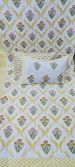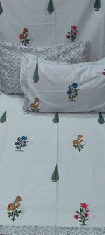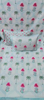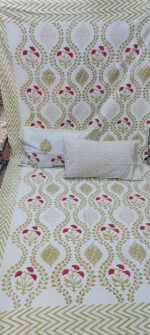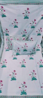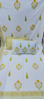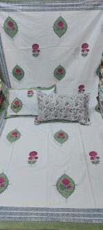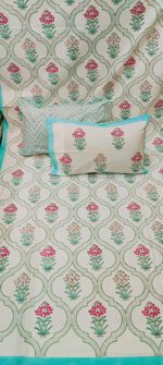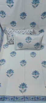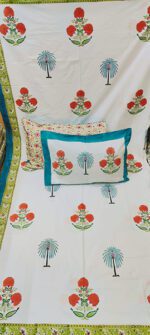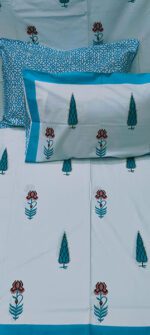 Product Description- 100% premium cotton block print 1 bed sheet (108/108 inch) with 2 pillow covers (18/27 inch)